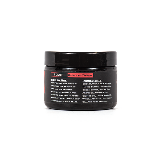 Badass Beard Butter is an all-natural beard conditioner. It is formulated with premium, all-natural ingredients that hydrate and condition your facial hair. The creamy, soft beard butter is easy to remove from the jar and melts instantly in your palms.
