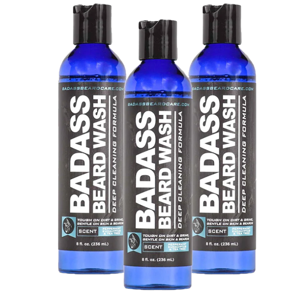 This isn't your grandpa's beard wash! Badass Beard Wash is specially formulated with tea tree oil, eucalyptus oil, aloe vera juice, and rosemary oil for beard hair and the skin underneath! This gentle yet effective wash is perfect for even the most sensitive skin and is great at keeping your beard hair light and clean and your skin hydrated and refreshed. The invigorating scent will wake up your senses and make your beard smell fresh and clean.