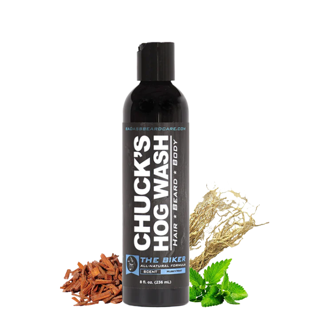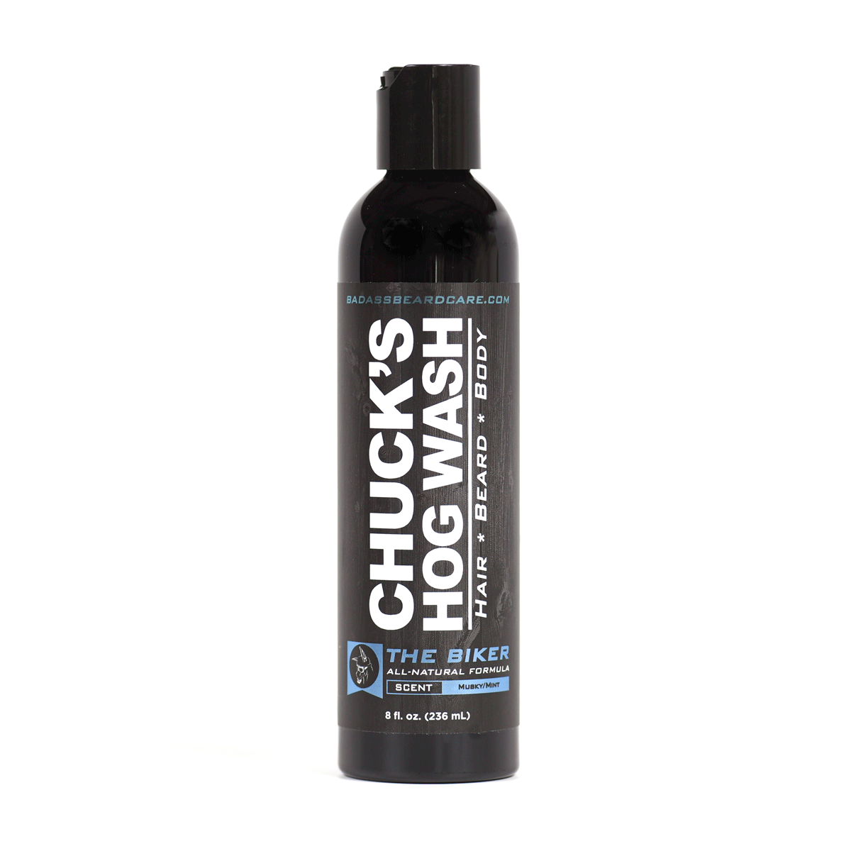 Chuck's Hog Wash is an all natural formula and is available in 14 of our Badass scents that we offer our beard oil and beard balm in! It is an all-in-one wash for the bearded man and can be used on beard, skin, and hair! It's made with 100% natural ingredients to be gentle on hair and skin and leave your beard softer than its ever been and is suitable for daily use!