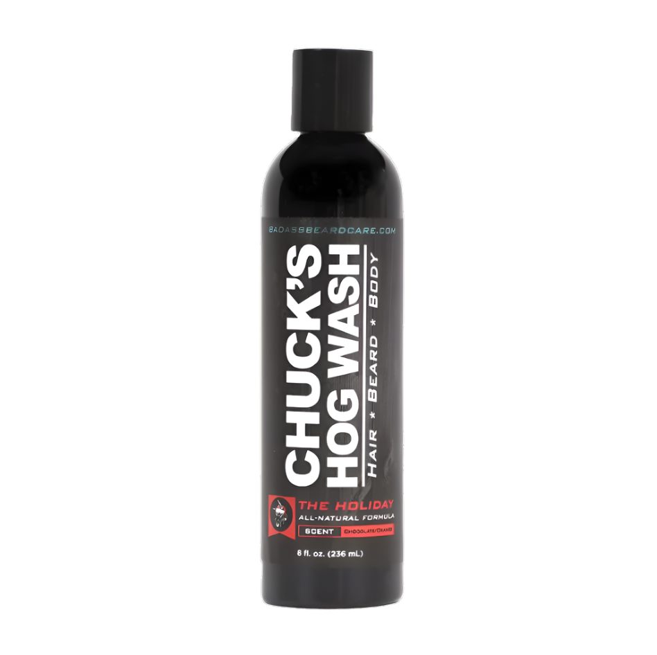 Chuck's Hog Wash is an all natural formula and is available in 13 of our Badass scents that we offer our beard oil and beard balm in! It is an all-in-one wash for the bearded man and can be used on beard, skin, and hair! It's made with 100% natural ingredients to be gentle on hair and skin and leave your beard softer than its ever been and is suitable for daily use!