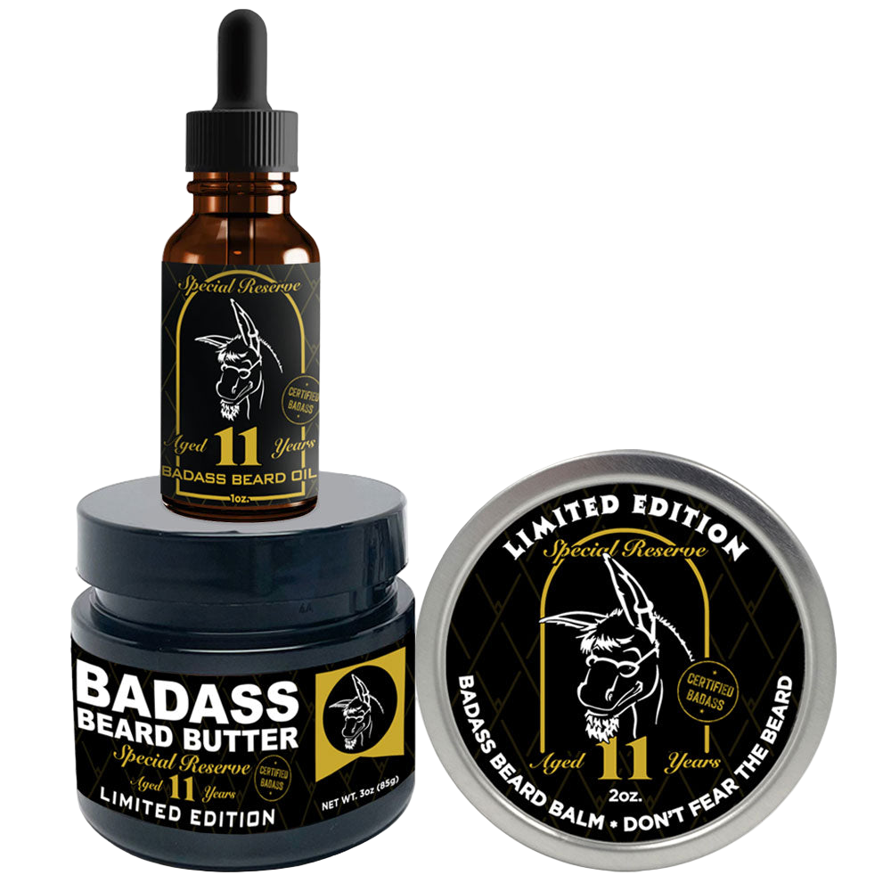 Beard Balm - Shea butter, cocoa butter, beeswax, coconut oil, Apricot kernel oil, argan oil, jojoba oil, pure vitamin E oil, fragrance, tea tree oil, eucalyptus oil, and rosemary oil.
